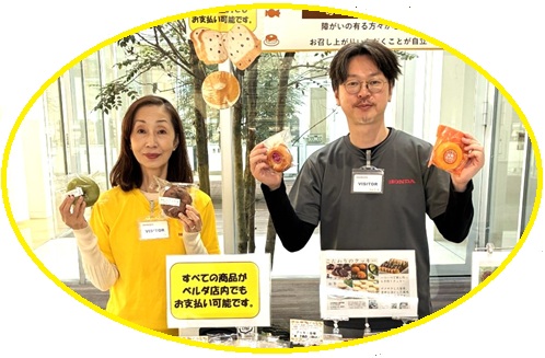 今月は、進和学園の自主製品に加え、「おやつシスターズ」の連携福祉施設から小田原支援センター(パン工房イースト)さんの人気商品「レモンフォナンシェ」を販売させて頂きました。
