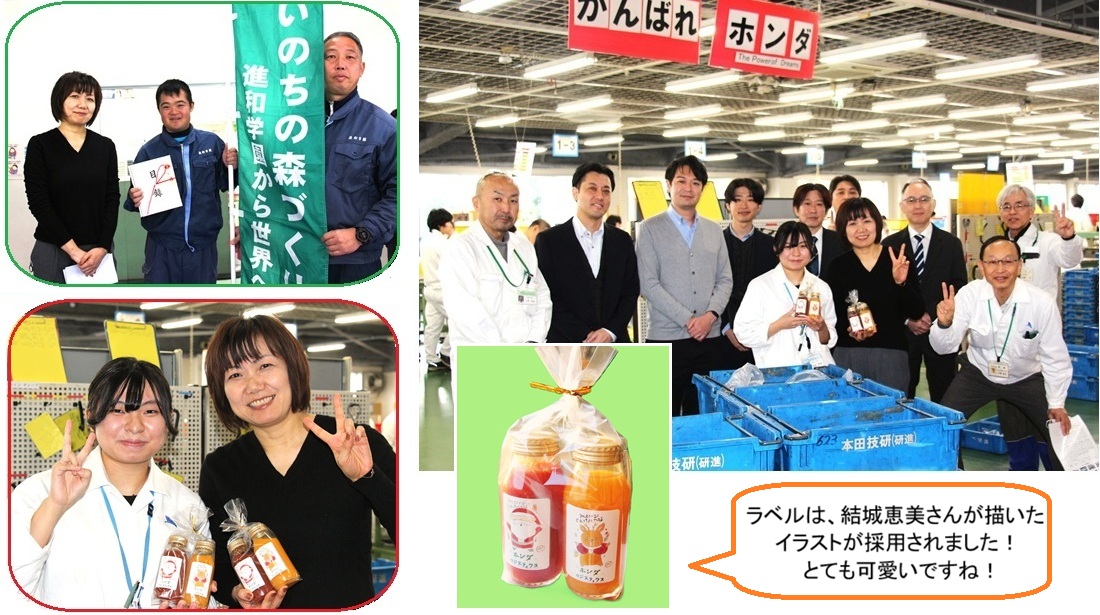 2025年12月22日(月)、同社管理本部より6名の皆様が、恒例のクリスマス交流会のためにご来訪下さいました。福祉工場「しんわルネッサンス」において、クリスマス・プレゼントの贈呈式が行われました。私達が推進する「いのちの森づくり」プロジェクトへのご寄付目録を拝受。今年も50万円の多額のご寄付を賜りました。10年連続で、ご寄付の累計は、500万円に及びます。更に、私達の「湘南とまと工房」に「トマト&みかんジュース」セットを多数ご発注の上、贈呈頂きました。心より感謝申し上げます。