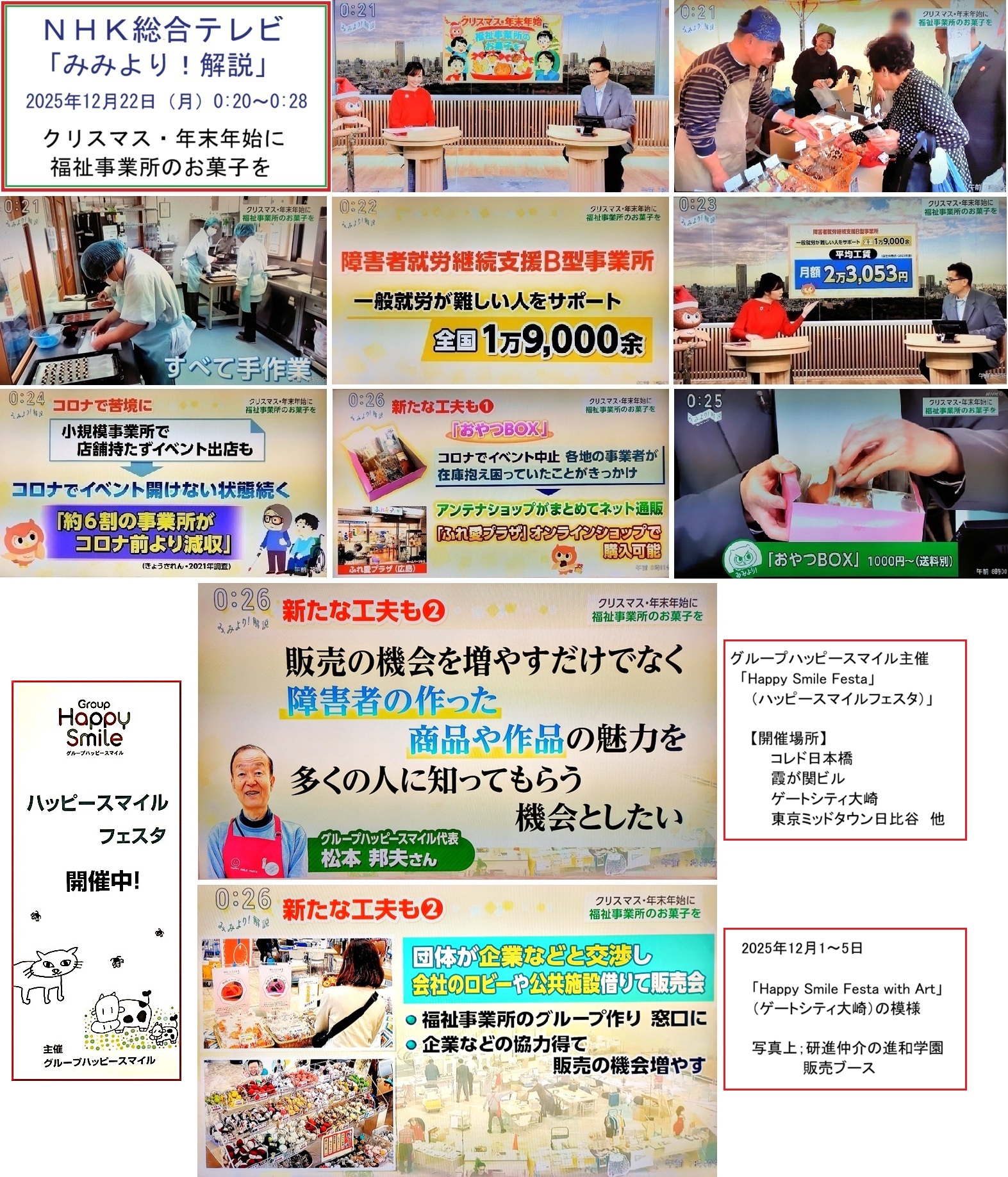 ・補足:上記②の販売会は、私達も毎回、参加している「Happy Smile Festa(ハッピースマイルフェスタ)」です。事務局
