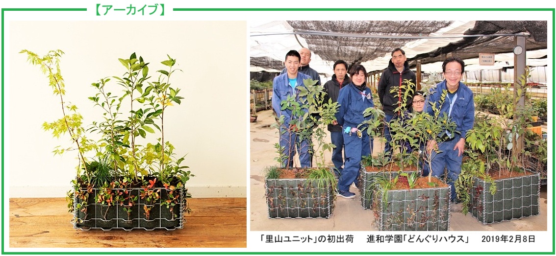 この「里山ユニット」は、都市緑化及び環境保全を広く手掛ける株式会社ゴバイミドリ様が提供されていますが、2019年より、研進 & 進和学園(どんぐりグループ)がその製作を請け負わせて頂いています。同社社長の宮田生美様はじめスタッフの皆様の親身なるご指導の下に、働き甲斐を実感しながら「里山ユニット」の仕事に励んでいます。
