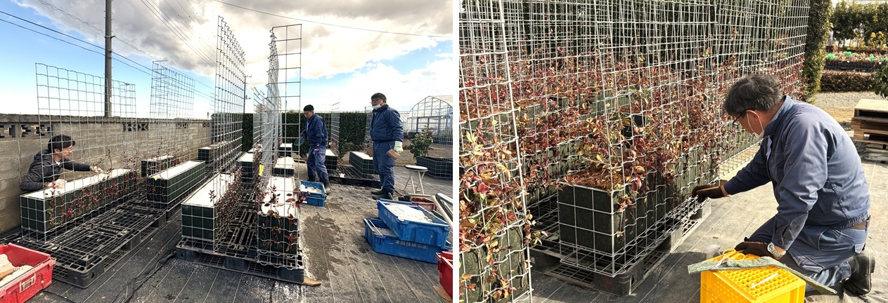 2026年1月21日、32基のユニットを納品させて頂きました。冬季は、植樹祭等のイベントも少なく、植樹・育樹活動に係わる売上を伸ばすことが難しい中で、貴重な仕事をご提供頂きましたこと、心より感謝申し上げます。次年度に向け、「里山ユニット」のご発注が継続して見込まれており、近く(株)ゴバイミドリ様との打合せが予定されています。