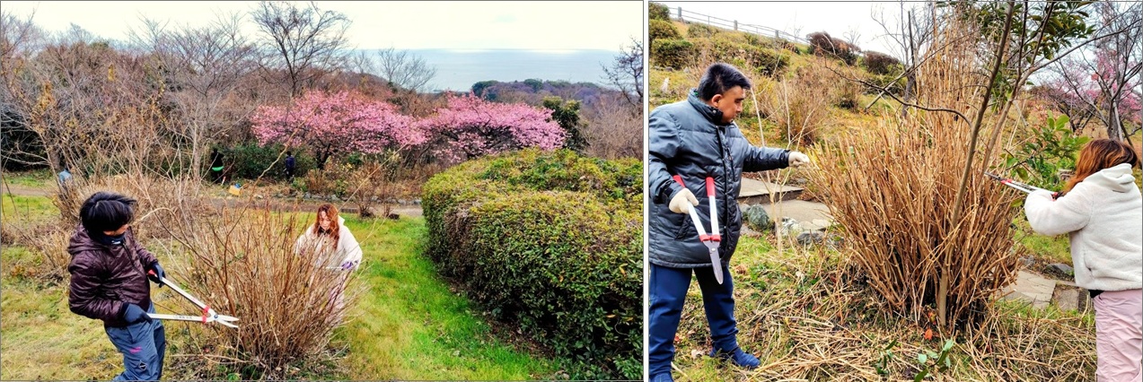 2026年1月21日(水)、湘南平・高麗山公園(神奈川県平塚市/大磯町)の「アジサイ園」における保全作業を実施しました。この取り組みは、永年に渡り進和学園がボランティアで栽培して来たアジサイの保全を、「いのちの森づくり」プロジェクトと合わせ実施することとしたものです。アジサイの盗掘や脱落により空いたスペースは雑草が繁茂し、アジサイ自体も手入れが行き届かないと徒長して公園の景観を損ね、治安面でも支障が懸念されます。「いのちの森づくり友の会」基金を活用して障害のある方達の就労の場とすることで、定期的に手入れを行い公園の植栽を持続可能な形で保全することを目指しています。