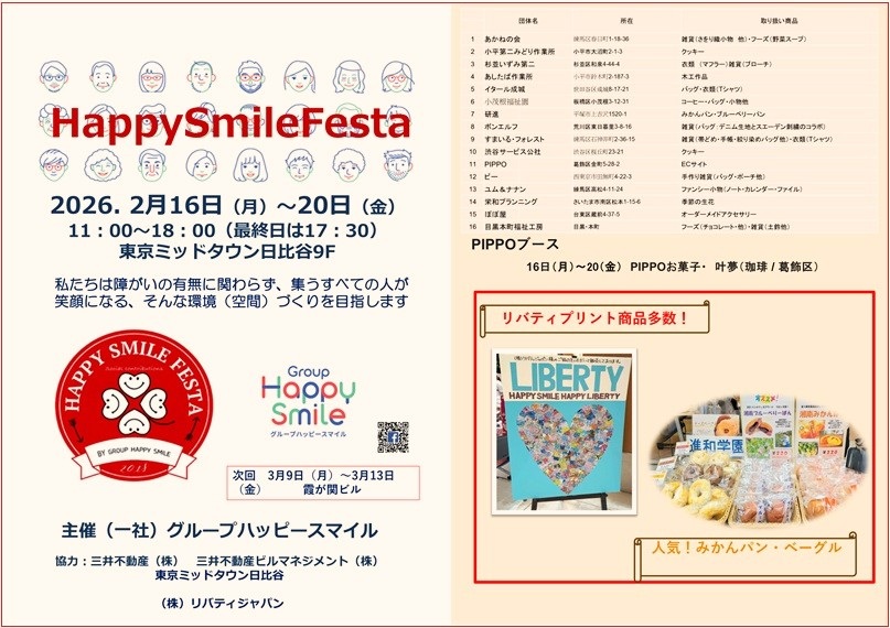 2026年2月16日(月)~20日(金)の5日間、東京ミッドタウン日比谷(9階)において、グループハッピースマイル主催の「ハッピースマイルフェスタ」が開催されました。